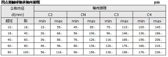 對於背對背或麵對麵配置的通用組配單列角接觸球軸承,分為以下三種軸向遊隙: