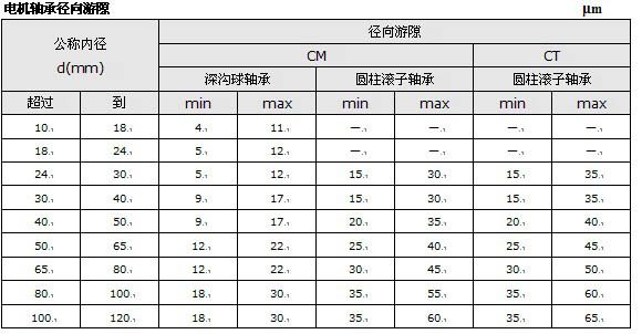 電機用深溝球軸承、圓柱滾子軸承通常對遊隙有特殊要求,以CM、CT表示。